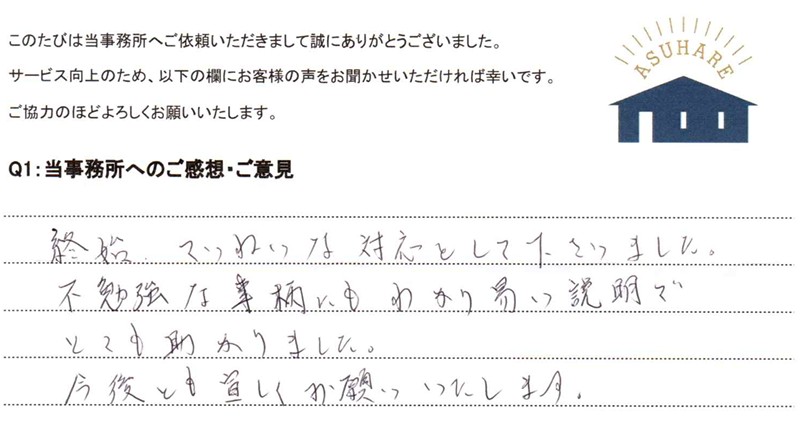 相続手続きのお客様の声